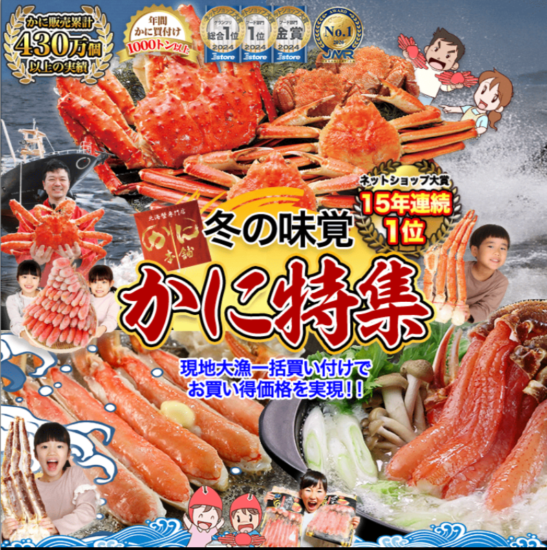 【PR】かに本舗 肌寒くなってきたら、いよいよカニの季節お鍋に、焼き蟹に、そしてお刺身に。様々な蟹が勢揃いしてるから迷ってしまいそう。家族が揃ったら笑顔があふれる食卓へ 超特大8L生たらばがに肩脚1肩(総重量約1.8kg) 14,800円 (税込) 送料無料 箱サイズ(約cm):縦23.5×横60×高12原料:生たらばがに原産国名:ロシア解凍時間:食べる直前に5~10分ほど流水で解凍してください。【注意】冷蔵庫や常温で数時間放置するとカニが黒変する場合がございます。賞味期限:ご家庭の冷凍庫では1~2ヶ月以内を目安にお召し上がりください。 詳細はこちら 特大7Lボイルたらば半むき身満足セット1.4kg超(総重量約1.6kg) 12,800円 (税込) 送料無料 箱サイズ(約cm):縦25.1cm×横36.1cm×高9cm原料:たらばがに原産国名:ロシア解凍時間:30分で解凍&お召上がりできる食べ方説明書を同封【注意】冷蔵庫や常温で数時間放置するとカニが黒変する場合がございます。賞味期限:セット内容(脚3~5本、南蛮3~5本、爪0~2個、爪下0~2個、肩2~4枚)太脚~殻持ち手の長さ平均:約23cm前後、個体差があります。 詳細はこちら 【かにしゃぶ用】特大6L~4L生ずわい脚肉むき身 30~40本(約1kg) 11,600円 (税込) 送料無料 原料:生ずわい蟹(酸化防止剤)原産国名:米国アラスカ沖、ノルウェー、ロシア、カナダ解凍時間:食べる直前に5~10分ほど流水で解凍。【注意】冷蔵庫や常温で数時間放置するとカニが黒変する場合がございます。賞味期限:ご家庭の冷凍庫では1~2ヶ月以内が目安。箱サイズ(約cm):縦25.7×横22.5×高さ10.0備考:太脚~殻持ち手の長さ平均:約15cm前後、個体差があります。加熱してお召し上がりください。 詳細はこちら ■ お支払い方法 ・代金引換・クレジットカード・電子決済・銀行振込(先払い)・郵便振替(先払い)がご利用頂けます、※先払いの決済につきましては入金確認後の発送となります。 ご利用案内はこちらへ 商材名 かに本舗運営者 MW※当サイトはアフィリエイトプログラムを利用し宣伝目的で作成しております。